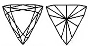 The TRIANGLE DIAMOND, first designed in Amsterdam, is cut into the shape of a wedge. The corners of the triangle cut diamonds may be pointed or rounded and the body will vary depending on the stone’s characteristics and the cutter’s preference.