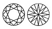 Hearts and Arrows Diamonds: Round brilliant cut diamonds with ideal proportions, polish and symmetry become "Hearts and Arrows" diamonds. These stones display a visual pattern of 8 hearts looking down through the pavilion and 8 arrows when viewing the stone in the table up position. A special viewer (Hearts & Arrows Gemscope) is used to show this effect.